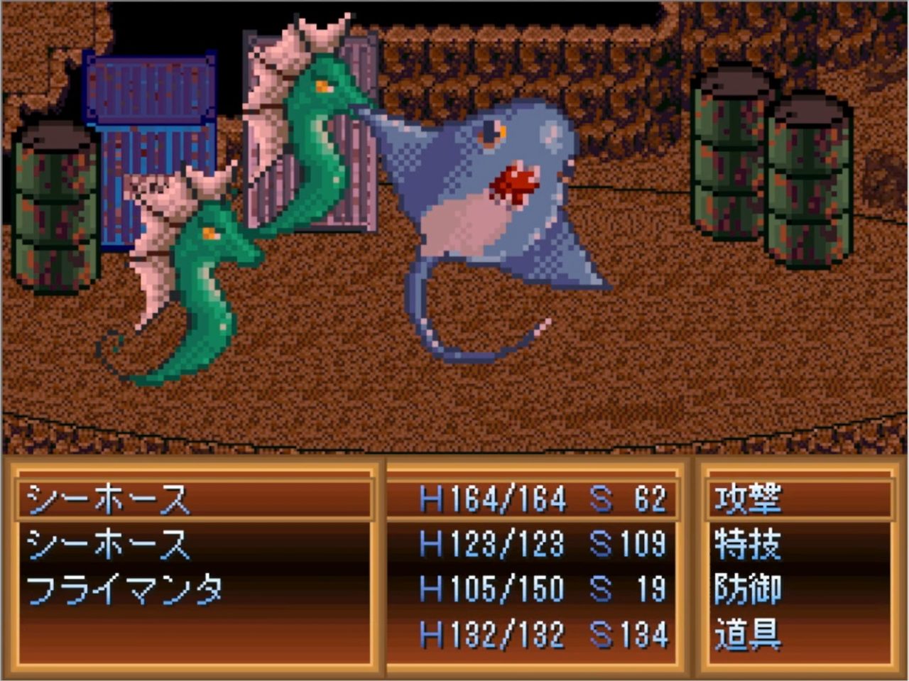 - 本作ではRPGツクールデフォルト戦闘。いわゆるドラクエ式戦闘。